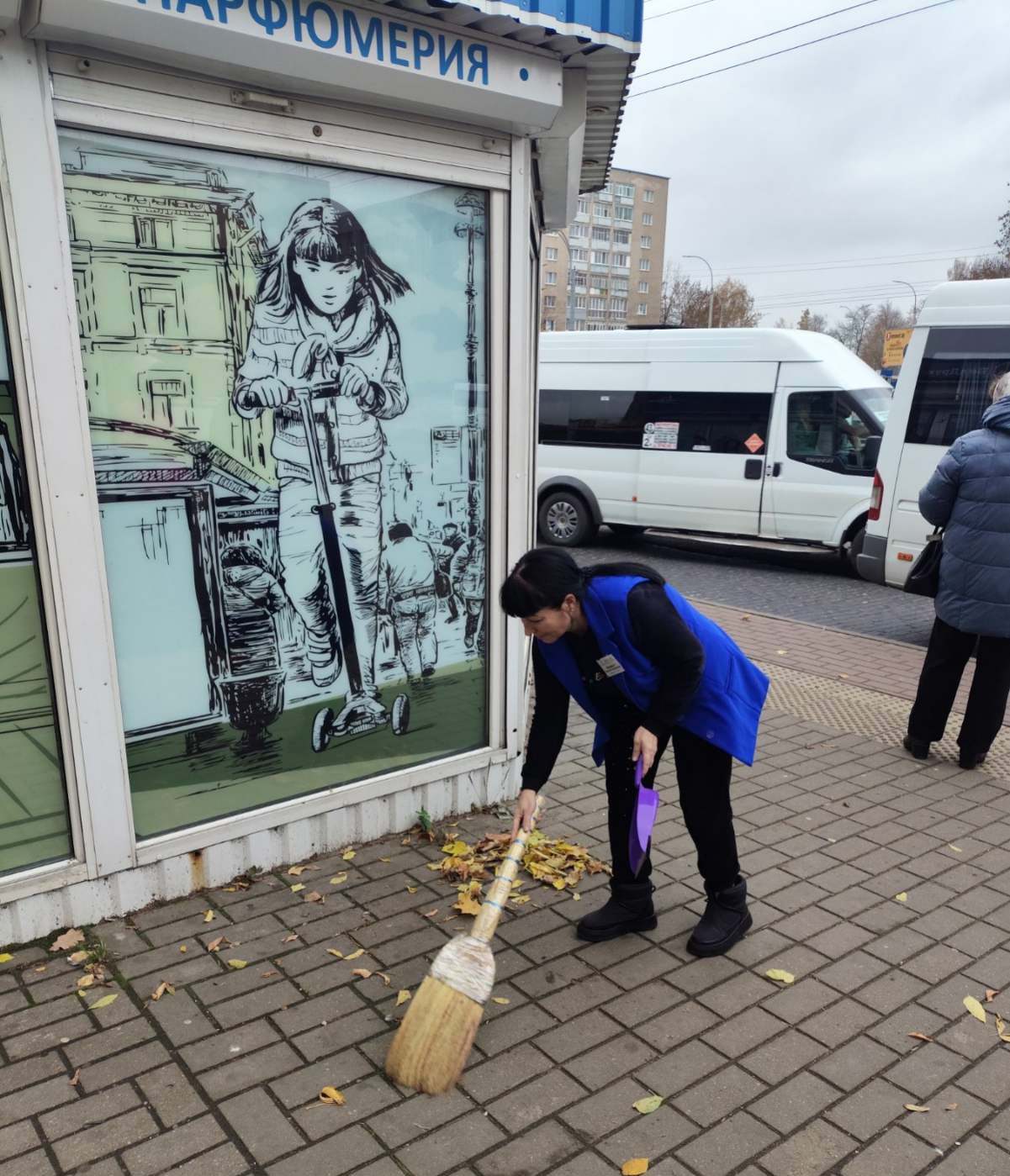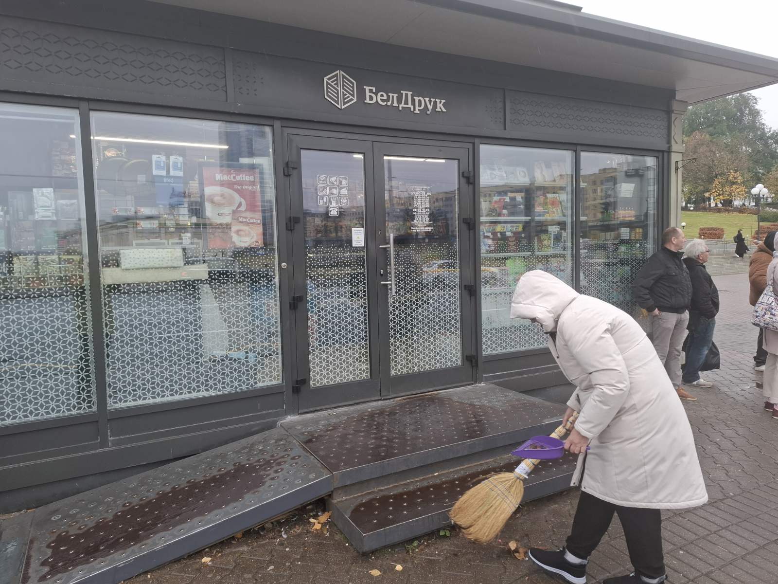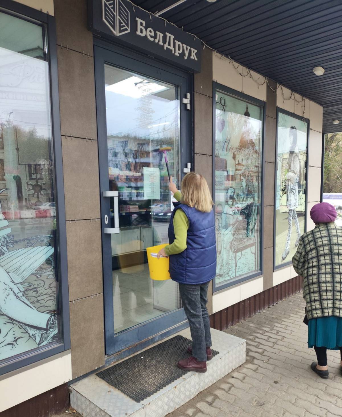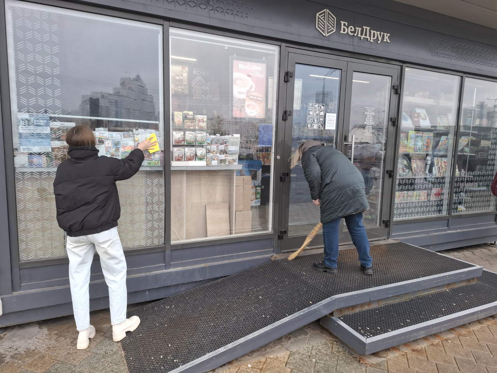 А это продавцы Могилёва, которые также вышли в свой выходной, чтобы освежить свои торговые объекты как снаружи, так и изнутри.