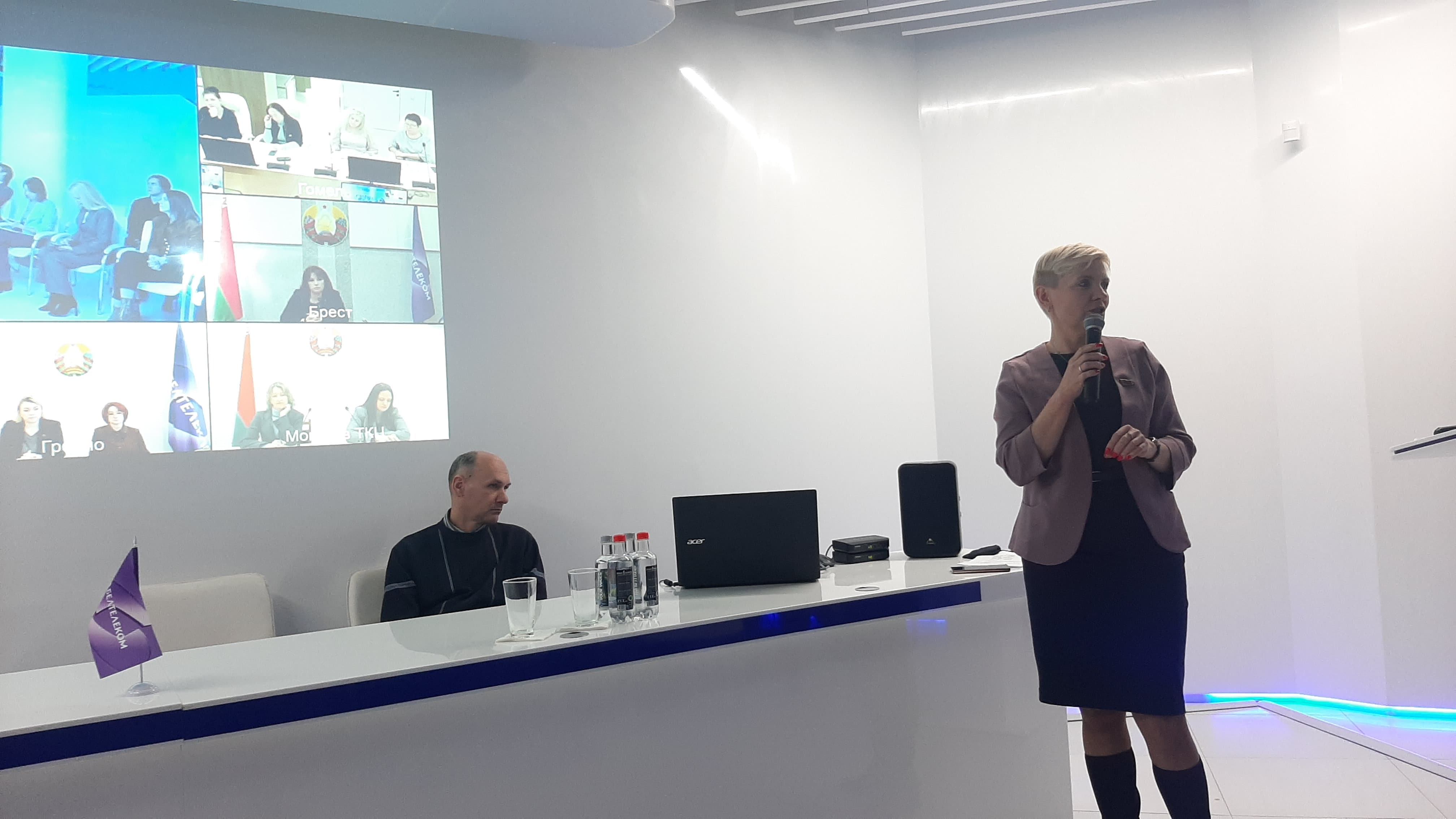 Семинар на тему «Взаимодействие государственных организаций и СМИ. Специфика работы в медиапространстве в современных условиях» открыла Алешкевич Наталья Анатольевна - заместитель начальника Управления контроля, делопроизводства и материально-технического обеспечения Минсвязи (помощник Министра). Именно она координирует данный проект с момента его основания. В своей речи она отметила важность совместных усилий в формировании единого информационного пространства отрасли.
